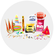 Bērnu istaba, ballītes piederumi, grāmatas